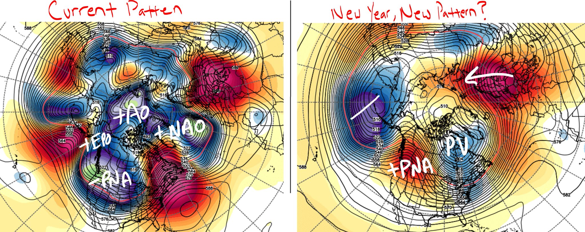 The evolution of the pattern is taking shape peeps and we go the first week of Jan to a more seasonable pattern with some Alberta Clippers in the latter part of the week possible, temps return to normal and we get into the winter pattern. On course for a good to great winter from mid January to early March.